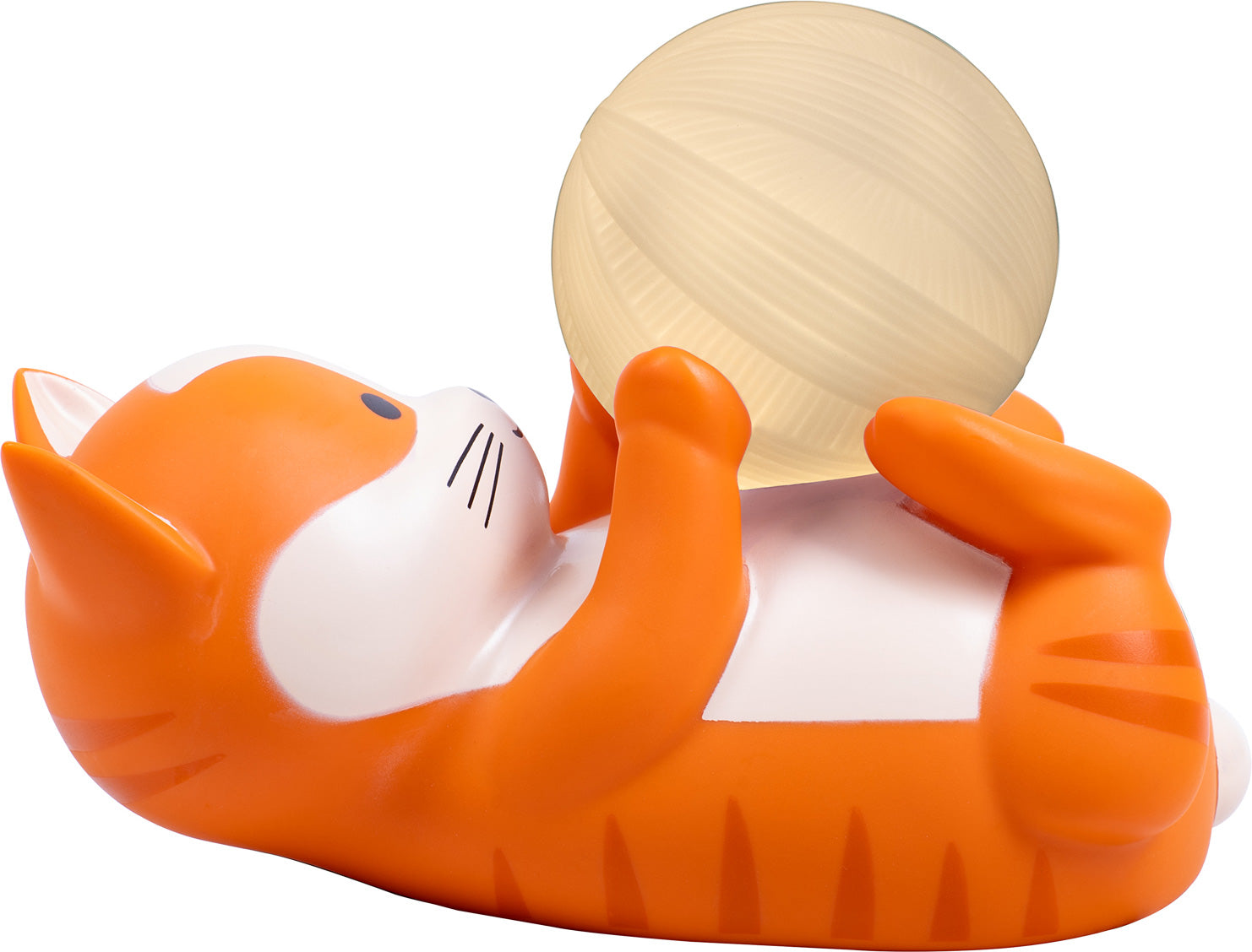 Here, kitty kitty! Cat lovers of all ages appreciate the adorable design and warm glow of this kitty-shaped lamp. Nacho is lying on his back, playfully holding a ball of yarn that lights up. Measuring 6.1" x 3.94" x 4.53", it's a paw-some size for bookshelves, bedside tables, or desks. Requires 3 AAA batteries, not included.