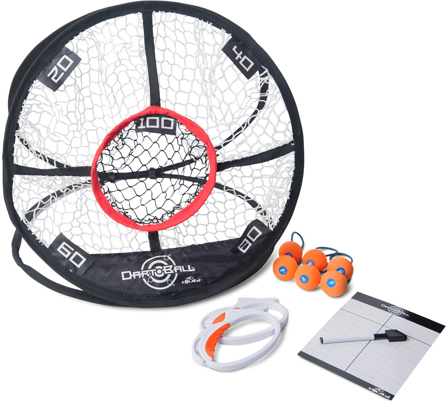 Take aim for screen-free fun! Ages 8+ build their accuracy skills by hooking a Djubi ball onto a handheld launcher, aiming at the pop-up netted target, and launching to score from 20-100 points! Play outdoors or indoors (just aim away from Grandma's prized possessions). Comes with 6 Djubi balls, 2 launchers, target, and dry erase score chart with marker. For 1-2 players.