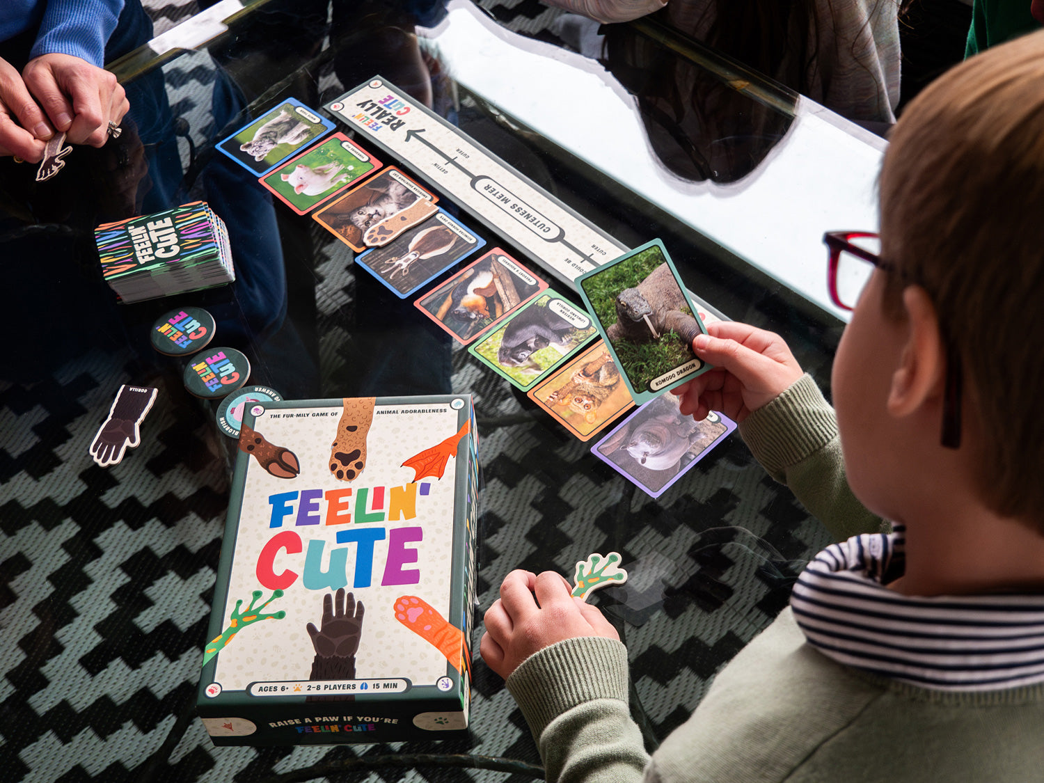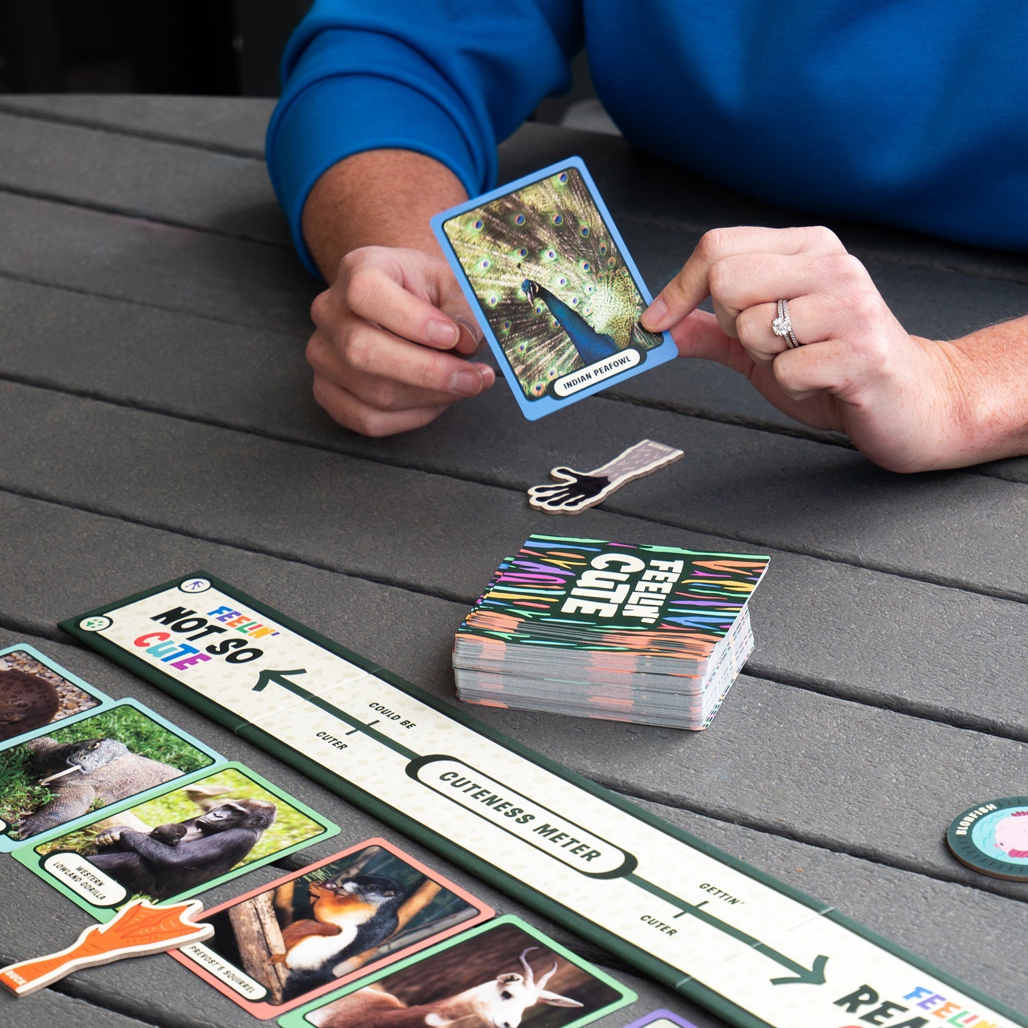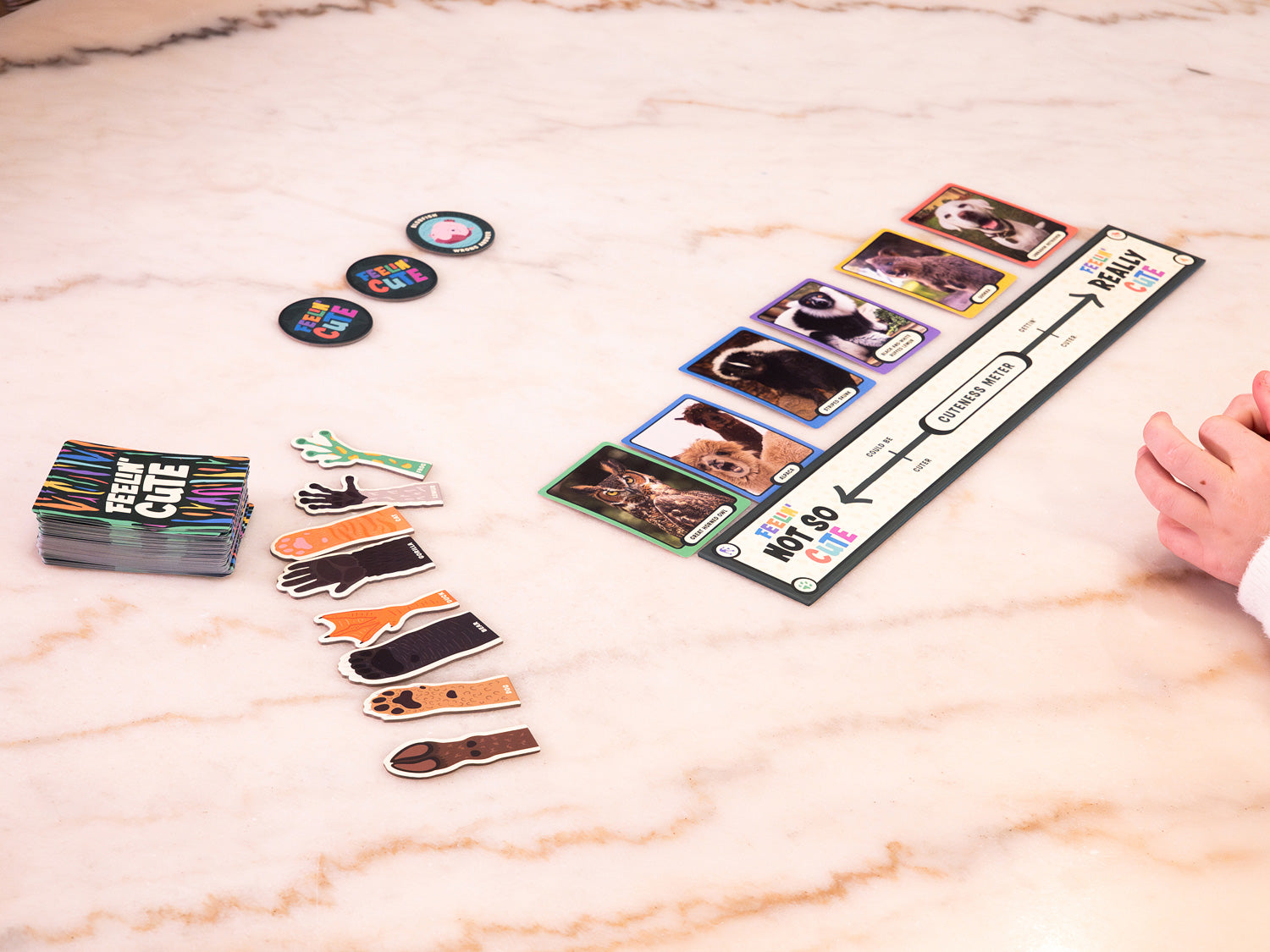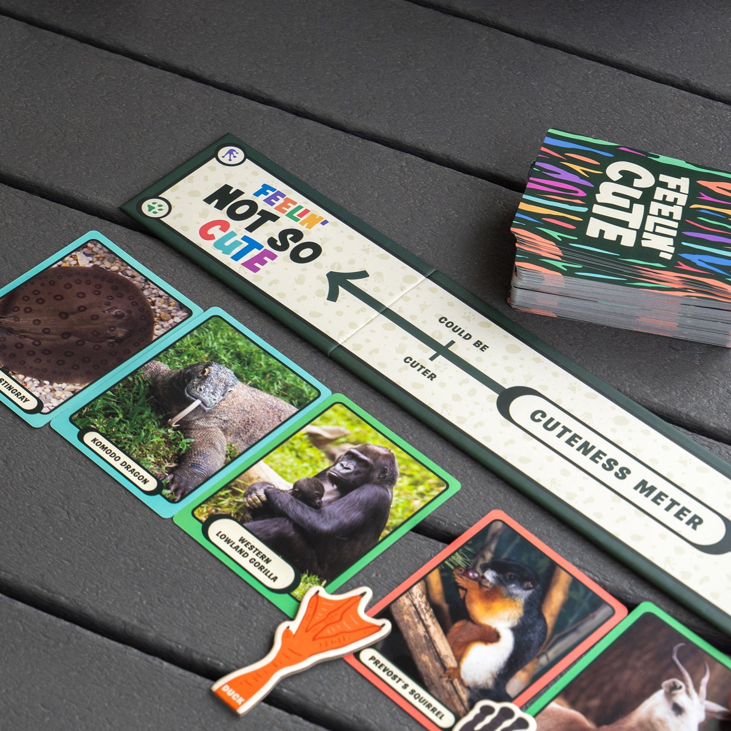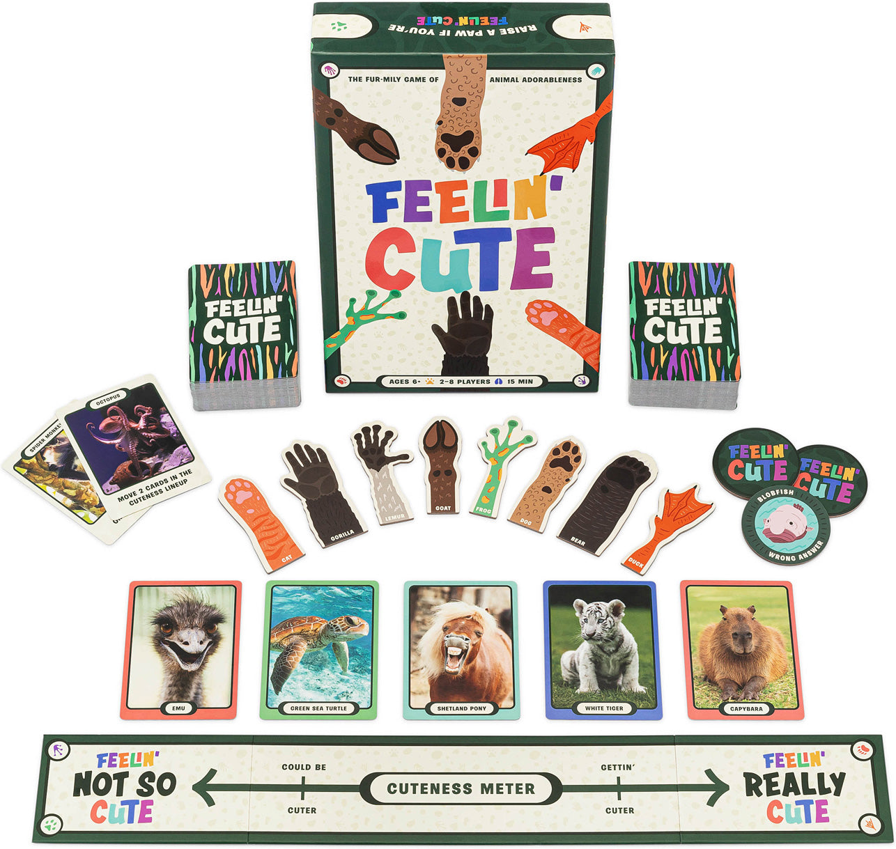 Welcome to the ultimate showdown of adorableness, where you have been given the critically important (and utterly charming) mission of determining which animal is the cutest of them all. Take turns being the Cuteness Boss, deciding where animal picture cards should fall along a cuteness meter from "not so cute" to "really cute". Other players place their paws along the cuteness meter to guess how the Cuteness Boss will rank that animal. Play cooperatively, or by earning points for correct guesses! Flip over a blobfish token for each round with no correct guesses - 3 blobfish means game over. For 2-8 players.