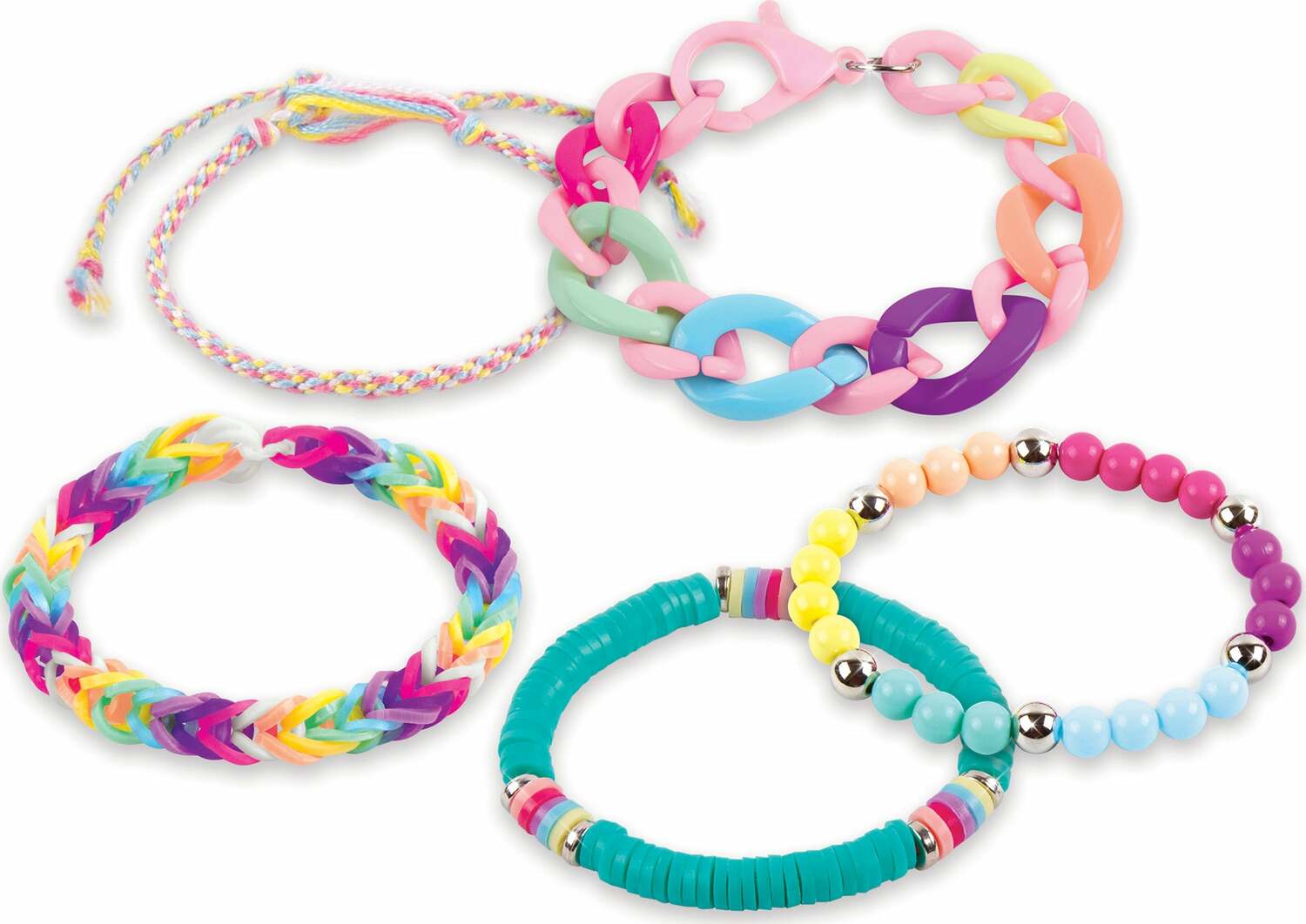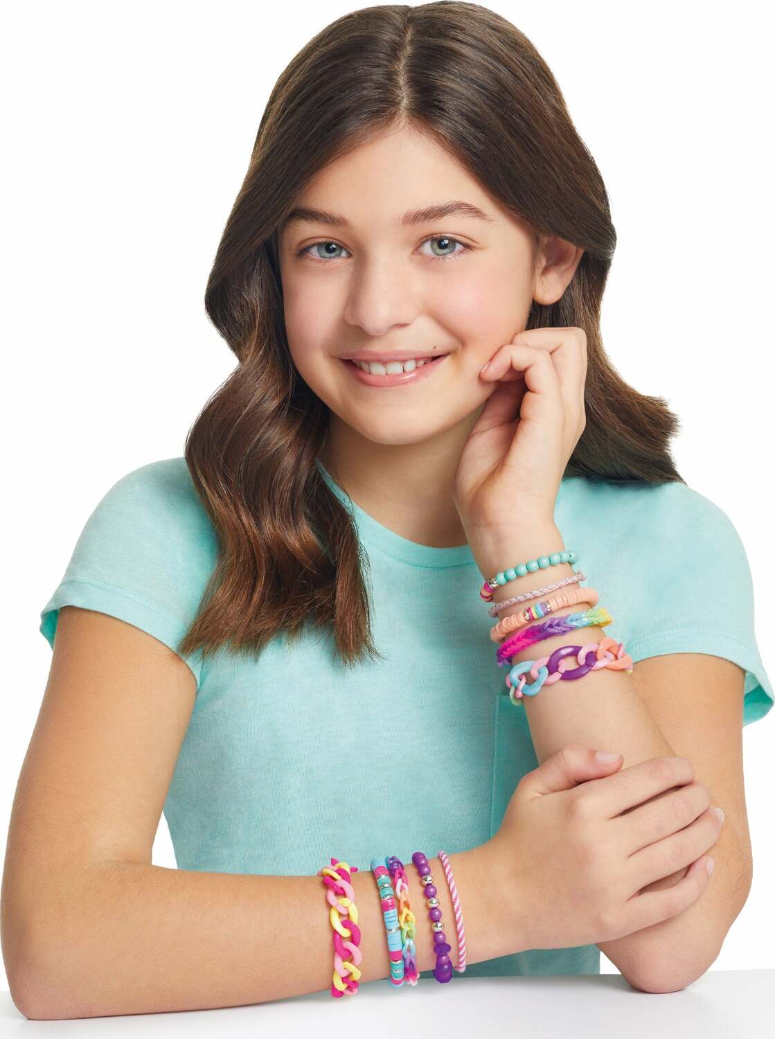 Tweens and teens make, wear, and trade 5 styles of bracelets using this handy kit with built-in storage! The 5 in 1 Activity Tower rotates for easy access, and has 5 removable snap-lid storage trays and a bracelet holder to display designs. Each tray houses a unique activity with easy instructions: Heishi Craze, Just Bead It, It's Elastic!, Friends Forever and Link Em' Up! Make over 40 bracelets with the included 1600 components.