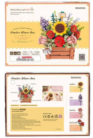 The Robotime Wooden Flower Box is a charming and intricate DIY project that brings a touch of nature into your home. This exquisite set features pre-colored wooden pieces that form a beautiful bouquet, including Sunflower, Lilac, (4) Red Camellia, (2) Pink Rose, Eucalyptus picket fence box and gift card. With 124 pieces, the assembly process is both engaging and rewarding, resulting in a stunning decorative piece. Enjoy the satisfaction of creating a lasting floral arrangement that never wilts, adding a vibrant and elegant touch to your décor.