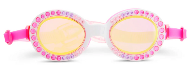 Fill your summer with color and sparkle in Aurora Swim Goggles – Halo, designed for kids ages 6 and up! Featuring a brand-new round-shaped frame, this dazzling update to our famous rhinestone swim goggles brings even more brilliance and flair to every swim. Adorned with a full set of classic rhinestones and finished with an easy-on back clip, these goggles provide a secure, no-tug fit for effortless swimming in style!