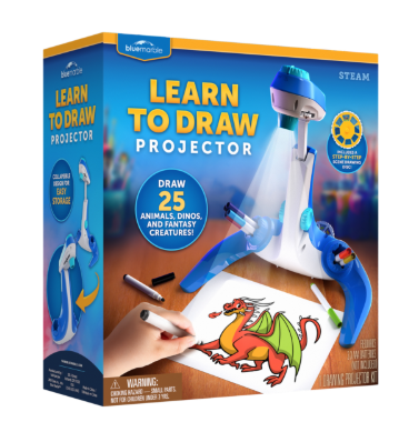 Kids easily create amazing works of art and develop confidence in their drawing skills with this incredible projector. A height-adjustable, tilting light source reduces the occurrence of shadows while sketching. The 4 swappable image discs help kids draw 25 animals, dinosaurs, and fantasy creatures. The fourth disc is a step-by-step drawing tutorial that guides them through drawing an entire scene. Follow the color suggestions using the 9 included markers, or customize with their own art supplies! It's easy to use, simple to set up, and has convenient storage features like disc holders and folding legs. Requires 3 AAA batteries, not included.