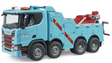 Recovery and towing trucks for commercial vehicles and trucks are among the most spectacular vehicles that children can discover on our roads. And the superior power and technology of these vehicles is impressive. At BRUDER, children can now discover and recreate these fascinating features on the new Scania Super 560R Recovery and Towing Truck. The wheel lift can be folded down and accommodates the front wheels of the vehicle to be towed. Behind one of the many opening flaps, the main arm height adjustment is situated, with which the main arm including the vehicle can be raised. A cable winch is located at the tip of the telescopic main arm. The supplied adapter can be attached to the bumper of a MAN TGS, MB Arocs, MACK, SCANIA to be recovered, and a vehicle that has been involved in accident be recovered and towed to the wheel lift with the cable winch.