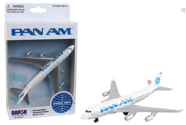 Fueled by your budding pilot's imagination, the DARON Pan Am single Plane is ready to soar right out of the package on journeys to faraway, mysterious places around the world. Constructed from diecast metal and plastic parts with an authentic livery, the DARON Pan Am Single Plane even has rolling wheels to ensure your furniture and floors remain unblemished during taxiing, takeoffs and landings. Perfect for little hands, the DARON Pan Am Single Plane measures approximately 5 3/4 inches (L) x 5-1/4 Inches (W) x 1-Inch (H) and is intended for ages 3 and up.