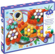 A collage activity to cover the 3 birds with soft bobbles. Following the templates in the instruction booklet, stick the colored bobbles onto the sticky areas of the 3 shaped boards. Surprise: 3 super-soft birds appear for you to pet!