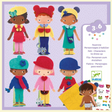 With 12 characters to choose from, 5 sheets of coloured felt with guidelines for each item of clothing and 2 pages of sticker accessories, this set is perfect for any creative child who loves dress up. Mix and match the outfits of up to 6 characters at a time.