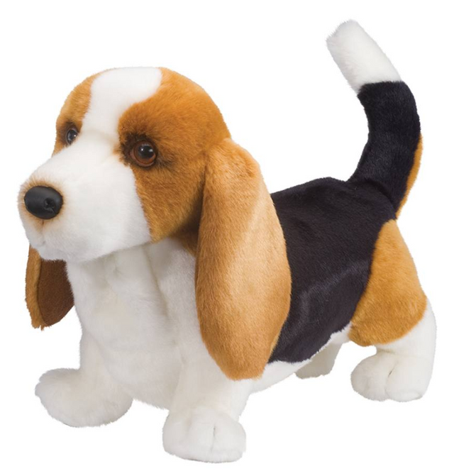 Harold, our delightful Basset Hound stuffed animal, realistically captures everything about this stately breed that a dog lover could hope for! Harold features sad droopy eyes, wrinkly neck folds, pendulous ears, and a long-curved tail. His tri-colored coat is made with ultra soft fabric that begs to be petted and cuddled. A realistic leatherette nose and airbrushed details on his face and around the edges of his ears bring additional realism to Harold’s design. Invite this gorgeous plush hound to live with you today or send him home to a Basset Hound lover. Wherever he goes, he’s sure to win fans with his sweet, expressive face!