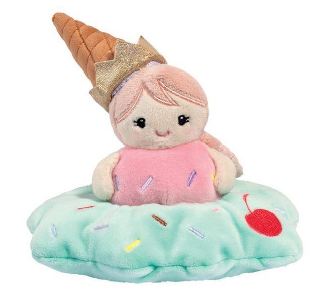 This enchanting princess plush toy with a twist combines the elegance of royalty and the sweetness of a melting ice cream cone. Her super soft strawberry and mint body is accented with a sprinkle pattern, and the ice cream cone crown on her head is the pièce de résistance.