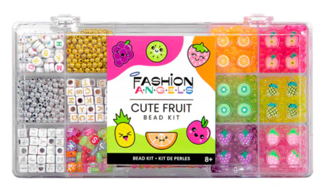 Unleash your creativity with the Fashion Angels Cute Fruit Bead Bracelet Making Activity Kit! This kit allows you to showcase your personality and mood by designing over 15 unique bracelets. Packed with colorful, metal, and alphabet beads, this set gives you endless options to create and share bracelets that are a true reflection of your style. With over 500 multicolored beads and fruit-themed polymer clay charms, including kiwi and strawberry, you can mix and match for countless design possibilities. Whether you're going for a sweet and fruity theme or something more classic, this kit has everything you need to make bracelets that stand out. Take the fun with you wherever you go! The handy bead organizer case keeps everything in place, making this activity kit perfect for car rides, summer camp, or sleepovers. Get creative anytime, anywhere. Looking for a fun and unique gift? This bead kit is the perfect present for kids who love to express themselves through fashion and crafts. Ideal for birthdays, holidays, or just because!