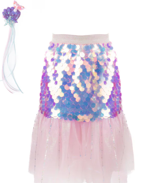 Dive into a world of sparkle with this enchanting mermaid set! The skirt dazzles with shimmering large sequins, dreamy pink tulle, and a comfy pink waistband. Paired with a matching hairclip, this set is perfect for little mermaids who love to shine in style!