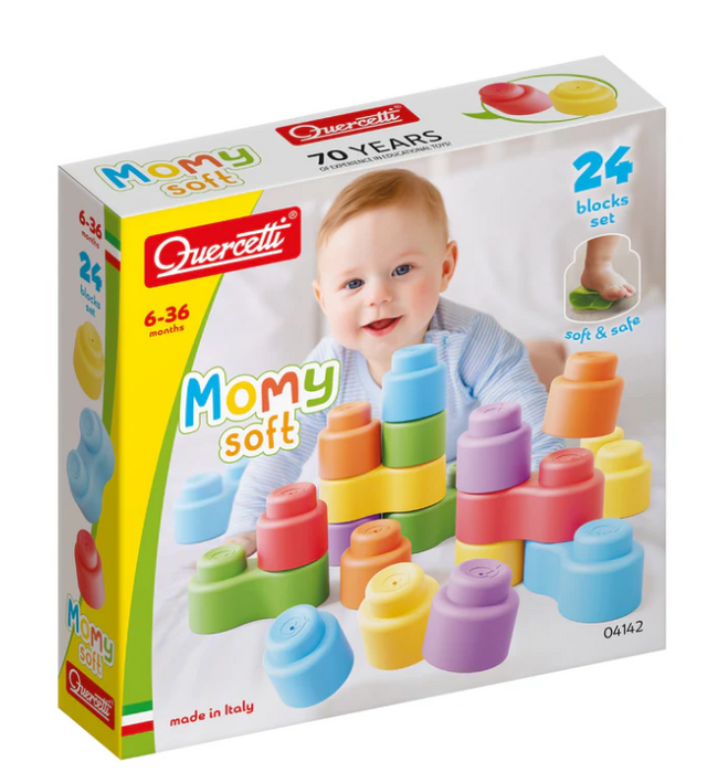 Momy Quercetti are large and soft colored constructions for the little ones. Vivid colors, rounded shapes, and easy interlocking offer endless combinations and guaranteed fun.