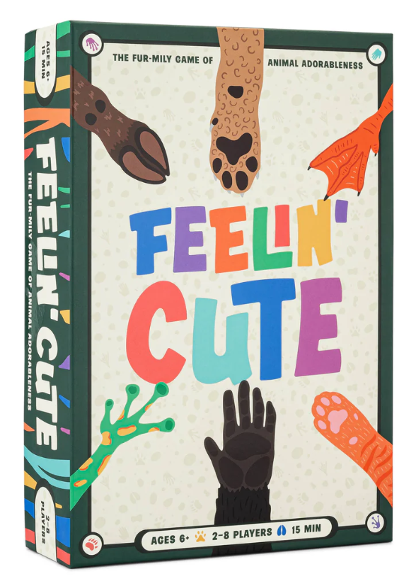 Welcome to the ultimate showdown of adorableness, where you have been given the critically important (and utterly charming) mission of determining which animal is the cutest of them all. Take turns being the Cuteness Boss, deciding where animal picture cards should fall along a cuteness meter from "not so cute" to "really cute". Other players place their paws along the cuteness meter to guess how the Cuteness Boss will rank that animal. Play cooperatively, or by earning points for correct guesses! Flip over a blobfish token for each round with no correct guesses - 3 blobfish means game over. For 2-8 players.