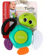 This cheerful Turtle Rattle by Infantino will entertain your little one throughout the day, putting a smile on their faces. This toy features a squeaky sound with you press its back and makes several rattling noises when you give shake it. The turtle's arms and legs have different textures to feel, as well as bright colors to help stimulate their senses. The fins move around, so your child can have a blast moving the turtle into various positions and comes with a sturdy handle. Your child will love to play with this sweet turtle, and it starts them off with helping to develop their sensory skills and motor development.