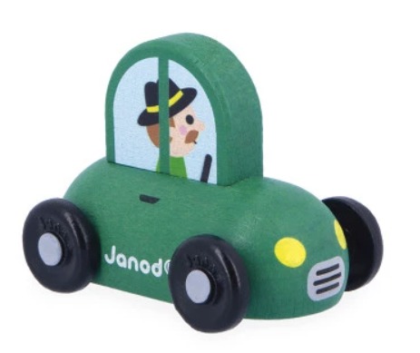 "Let's go get the bread with Grandpa!" This little wooden car is suitable for children as young as 12 months. With his little green car, Grandpa will enjoy driving along the country roads to visit the local shopkeepers! The shape has been specially designed for little hands, who can easily hold it by the top to roll it along. The vehicles are perfect for inventing stories and developing imagination! Babies first have fun rolling them around, then older children tell all kinds of adventures, developing their vocabulary and creativity.