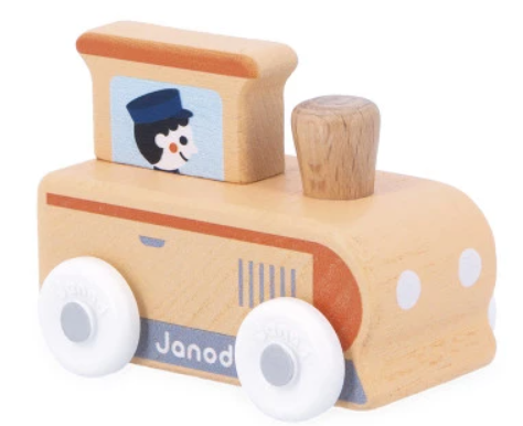 "All aboard the Chamois Express!" This little wooden train is suitable for children aged 12 months and over. With this orange locomotive, locals and tourists alike can take advantage of a train journey to admire the landscapes of the Mountain Valley! Its shape has been specially designed for little hands, who can easily hold it by the top to make it roll. The vehicles are perfect for inventing stories and developing the imagination! Babies first have fun rolling them, then older children can tell all kinds of adventures and develop their vocabulary and creativity.