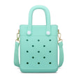 These charm bags are perfect for a day out and about! These are a mini version of the popular beach charm bags. The holes fit standard jibbitz charms. The adjustable strap allows you to wear it at any length.