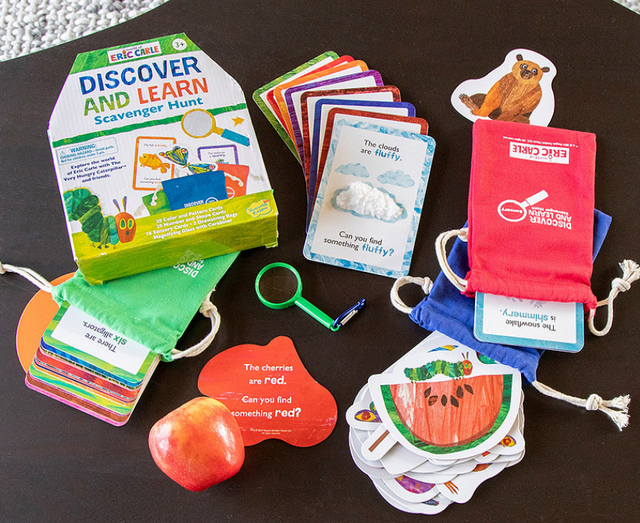 This game brings to life iconic illustrations from the World of Eric Carle, encouraging kids to seek out colors, patterns, numbers, shapes and a variety of textures—furry, sparkly, soft and more—using touch-and-feel cards for a multi-sensory learning experience. Equipped with a magnifying glass, little adventurers will enhance their observation and matching skills as they explore their homes or backyards, looking for a match. Can they find something that is furry like Brown Bear or sparkly like a seahorse? Introduce new concepts through gameplay, making learning fun and interactive. Packaged for easy travel, the quest for knowledge can continue anywhere your family goes!