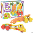 Designed for curious hands and active imaginations, this 2-piece set includes two unique vehicles that encourage cause-and-effect learning, shape recognition, and early motor skills. And when it’s time to hit the road, the included storage box unfolds into a colorful 3-D roadway scene, complete with printed lanes and scenery—no extra play mat needed!