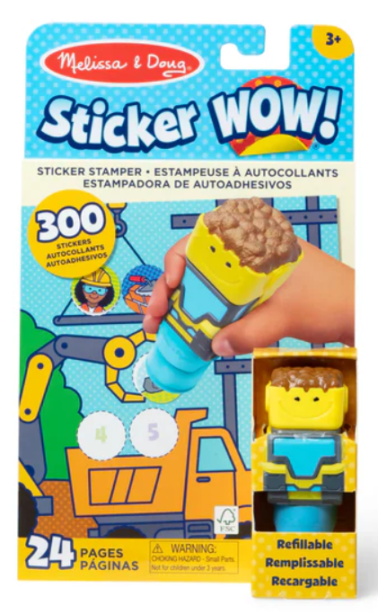 Wow! A whole new way to play with stickers! Use the purple Unicorn sticker stamper to place fantasy-themed stickers on the activity pad. We love that the activities help kids learn counting, matching, and object recognition. (We also love that the stickers are refillable and easy to remove from all surfaces!) No batteries required for this fidget-fun, on-the-go entertainment. Includes 24-page activity pad, stamper, and 300 stickers.