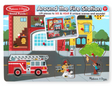 - 8-piece wooden sound peg puzzle with realistic fire station and neighborhood sounds