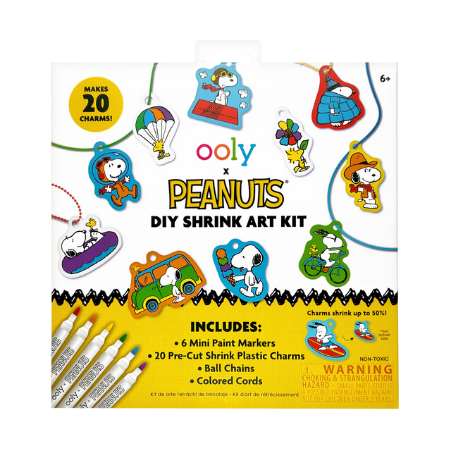 Make your own Snoopy charm-making kit! The OOLY x Peanuts DIY Shrink Art Kit lets you create 20 colorful Snoopy charms that shrink down to accessory size when baked. Complete with ball chains, colored cords, and mini paint markers, this craft kit is perfect for kids and Snoopy fans alike. Use these charms to personalize your backpack, keychain, or anything else kids love to decorate! Whether you’re showing off your loyalty to Snoopy or creating charms inspired by your favorite Snoopy moments, this DIY shrink art kit adds creativity and fun to every project.