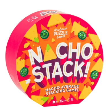 Balance the nachos on the bowl only to take them off again in this spicy stacking game! Take care not to pick the wrong nacho or they’ll all come crashing down! The player with the sauciest nachos at the end of the game wins!