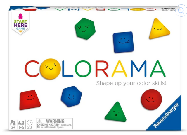 Enter the dynamic world of Colorama with its different colors and shapes! It's an early learning game for children ages 3 and up and part of Ravensburger's Imagine - Play - Discover collection of games designed to build basic learning skills in preschoolers. Colorama requires no reading and features four different quick-play game variations for 1-6 players.