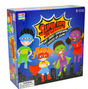 Contents include: Game Board, Game Spinner, 4 Character Pawns with Stands, 16 Dress-Up Tokens (4 for Each Player), 16 Disaster Tokens, 4 Superpower Reference Cards, 4 Capes, 4 Masks, 4 Cuffs, 4 Rings, Storage Bag, Instructions