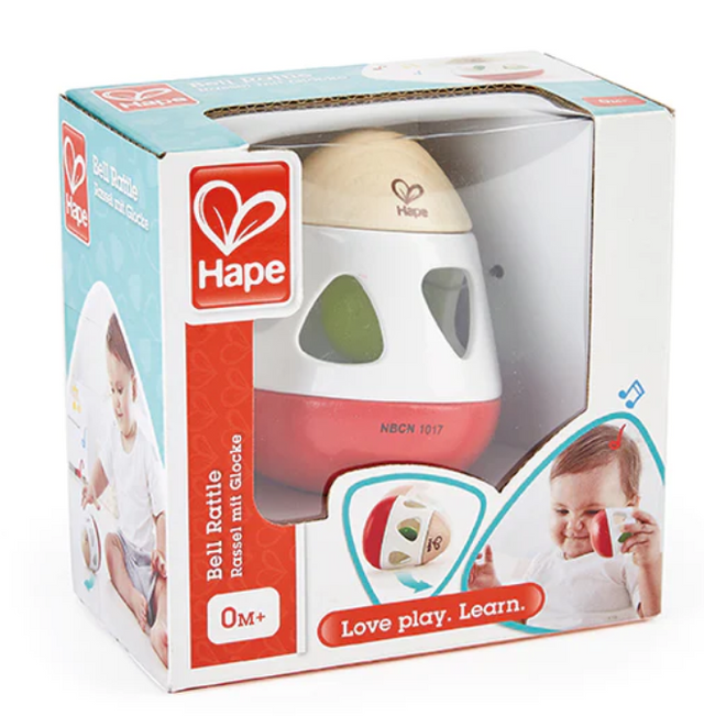 Roll this clever rattle away from you and it loops right back – a little like a boomerang. Easy for small hands to grasp, it has a pleasant-sounding bell inside.