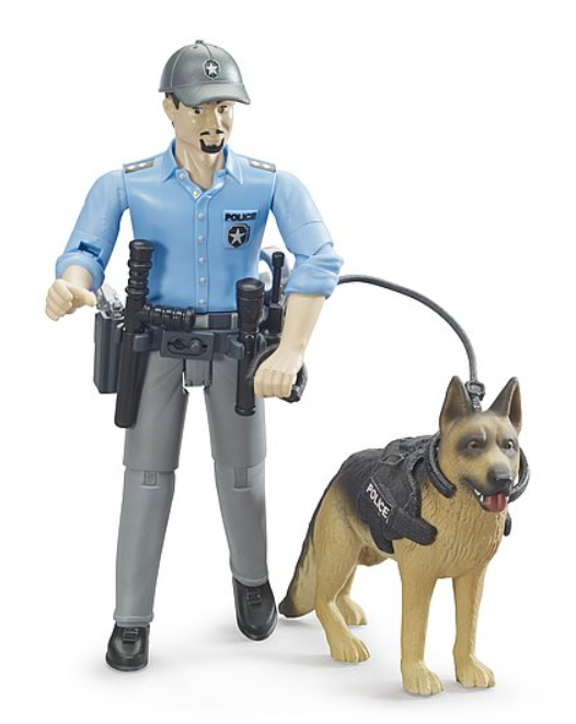 Dogs have been assisting police operations for over 200 years. The reason is more than obvious: dogs have a significantly better sense of smell and hearing than humans. Consequently, they support officers in a number of search, protection and rescue operations. BRUDER emergency service staff welcome the bworld police officer with dog as the most recent member of the squad. The dog is safely guided with a lead and dog harness. The bworld police officer is fully equipped to be ready for any situation. The waist belt features important tools, such as torch, radio device and truncheon.