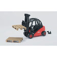 This New Linde H30D Fork Lift with Pallets by Bruder has a double stage mast that moves up and down as well as, back and forth for extra added play value. It even has pallets made like the real thing! This highly detailed toy is made of the highest quality plastic for a toy. The Dimensions of this Linde H30D Fork Lift are 11.4 X 3.6 X 8.7 inches.