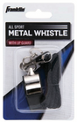Metal whistle with lanyard all sport Metal whistle with lip guard. Heavy duty nylon lanyard with metal swivel. Cork pea produces a loud shrill.