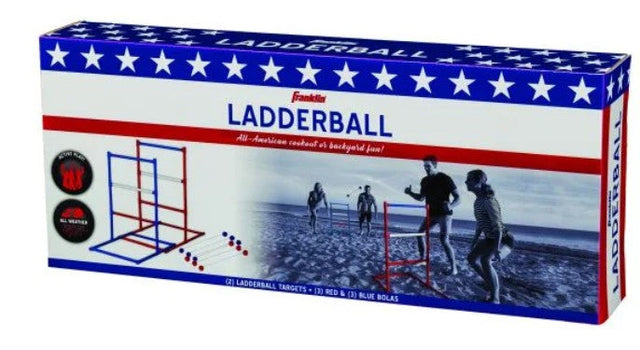 Bring this red, white and blue themed ladderball set by Franklin Sports to your next beach trip, picnic or backyard BBQ! The set includes (2) laderball targets and (6) bolas (3 red and 3 blue). The set requires no tools to set up and features a durable all-weather PVC frame. The base of the ladderball targets are weighted giving you versatility in your choice of playing surface.