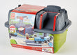 This great train set lets you build your own town! Unpack everything from the storage box then use the lid to create a cool little town for your passengers and cargo to move through!