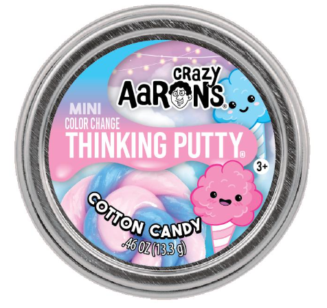 Have you ever been to a summer fair? They have rides, games where you can win prizes, and they ALWAYS have a cotton candy machine! You usually must choose between a pink or blue cotton candy, but with Cotton Candy Mini Thinking Putty, you can make both! This putty starts off as blue and gradually warms to pink!