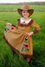 Hop aboard your stagecoach and travel back in time in our Wild West Annie dress. Vintage vibes abound in this tan frock that features faux-leather fringes and shimmery sequined rose accents. Hat not included.