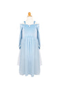 Make their dreams of being a princess come true with this elegant dress that makes everything more magical: birthday parties, holiday gatherings, even everyday errands! This enchanting gown features a soft, crushed blue velvet top with spaghetti straps, off-the-shoulder long sleeves, beautiful silver trim, and a stunning blue gem. Perfect for twirling and dancing, this costume is built to last for years of imaginative fairytale adventures. Added perk: it's machine washable!