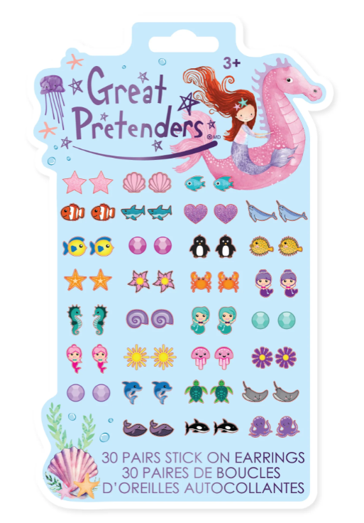 30 pairs of stick-on earrings! A different pair every day of the month. Achieve the pierced ear look without having your ears pierced with these amazing underwater-themed earrings.