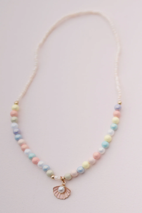 Made with a variety of pastel beads, this shell necklace is a great addition to any mermaid's jewelry collection. This beautiful necklace is made with two styles of beads & a charming shell pendant. Be sure to check out its matching bracelet!