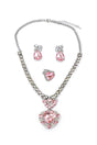 Classic glamour gets a modern twist with The Marilyn 4 Piece set. This bold and beautiful boxed-set includes pink & silver clip-on earrings, a heart-shaped ring, and a coordinating necklace jam-packed with jewels.