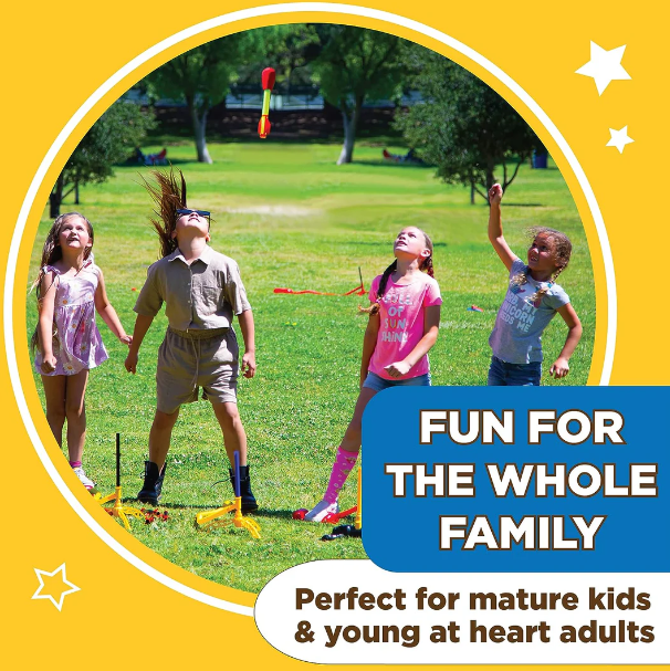 - 🤙 EASY TO ASSEMBLE AND TAKE ALONG - This toy rocket launcher has been designed to easily fold for storage and travel. 100% Kid-Powered, no batteries required. Perfect for birthday and holiday gifts.