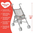 Inspire hours of imaginative, nurturing play indoors or outdoors! Teach responsibility as you enable your kids to bring their dolls, stuffed animals, or toys on adventures. This high quality stroller has durable wheels so kids can push it along in front of them on grass or sidewalks. It features a gender-neutral colorful zig zag pattern, easy grip handles, and sturdy straps which allow your child to immerse themselves in imaginative play while keeping their babies safe and sound. It folds easily for storage and fits dolls up to 18".