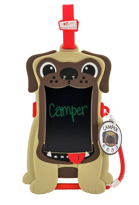 Kids can doodle with anything, including the attached stylus, a pen cap or even their fingernail. With the push of Camper's nose, the doodle board instantly clears itself. There are no erase marks or wiping needed! Perfect for kids who are using their imagination to write and create with intention and purpose.