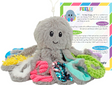 Sequins, satin, microfiber, bumpy, shaggy, corduroy, fluffy, and soft - each tentacle of this happy octopus features a unique sensory experience plus a small marble hidden inside.