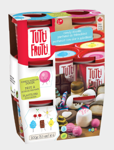 Six tubs of bubble gum, cherry, vanilla, cotton candy, chocolate and lemon scented modeling dough, compliment the baking, ice cream and cupcake kits.