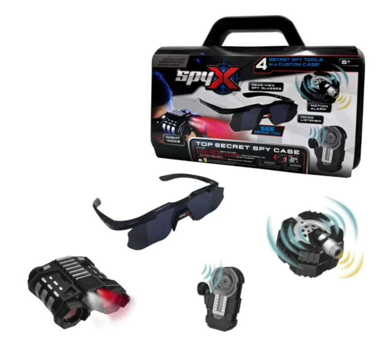 - Complete Spy Kit for Junior Agents: This spy gearfor kids age 6+ includes all essential tools- Night Nocs, Motion Alarm, Rear View Spy Glasses and Micro Listener. Perfect for role playing secret missions.