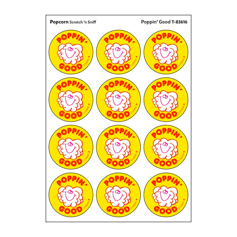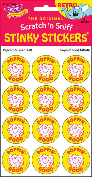 - Get a whiff of this Poppin' Good, popcorn-scented sticker! TREND Scratch 'n Sniff Stinky Stickers® from the '80s are BACK! And they're SCENT-sational! Fun to collect, trade, and celebrate accomplishments and special occasions. Collectors will be happy to spot the ★ to distinguish TREND Retro Stinky Stickers® from those printed in the 1980s.