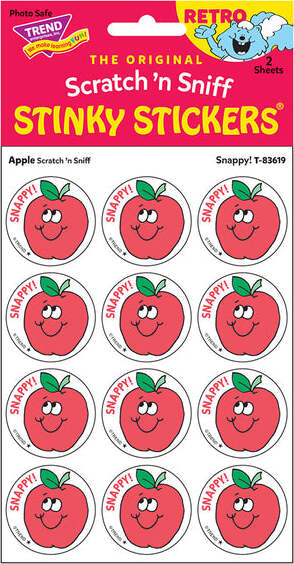 - Get a whiff of this Snappy!, apple-scented sticker! TREND Scratch 'n Sniff Stinky Stickers® from the '80s are BACK! And they're SCENT-sational! Fun to collect, trade, and celebrate accomplishments and special occasions. Collectors will be happy to spot the ★ to distinguish TREND Retro Stinky Stickers® from those printed in the 1980s.