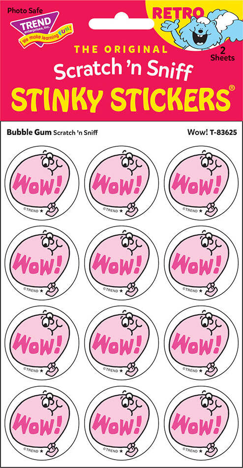 - Get a whiff of this Wow!, bubble gum-scented sticker! TREND Scratch 'n Sniff Stinky Stickers® from the '80s are BACK! And they're SCENT-sational! Fun to collect, trade, and celebrate accomplishments and special occasions. Collectors will be happy to spot the ★ to distinguish TREND Retro Stinky Stickers® from those printed in the 1980s.